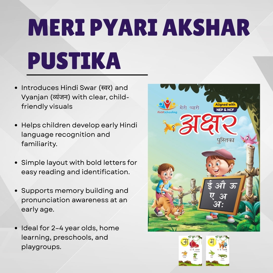 Introduces Hindi vowels (स्वर) and consonants (व्यंजन) in an easy and engaging way, supporting bilingual learning from an early age.